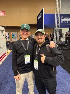 Freitagmorgen ging es direkt zum Columbus Convention Center, nur etwa zehn Minuten entfernt – und dieses Gelände ist wirklich riesig. Nach dem Abholen unserer Badges liefen wir hinein, und keine zehn Meter später sprach Duke bereits mit einer echten Legende: Paul Manieri (Head Coach der South Carolina Gamecocks, NCAA D1).